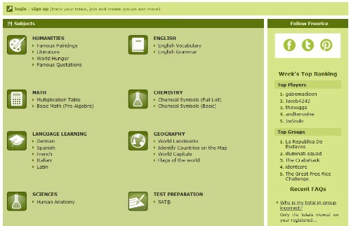 1. Links Down: Link to related TIER 3 pages, which makes the home of the bulk of your content; TIER 3... The Leaves on the Tree If your home page (TIER 1) is the tree trunk, TIER 2s are the branches. TIER 3s are the vast majority of pages, the leaves that actually make up most of your site's content. Make sure that every TIER 3 can be reached by a link from a TIER 2. And link back up from your TIER 3 to its TIER 2, and the TIER 1 (your home page). You should put some text links at the bottom of each page for this. The net result is a clean, 3-TIER approach that yields an easy, navigable site for both your visitors and the Search Engine spiders. Your TIER 2s are only one click away from your home page. And it takes 2 clicks to get from your home page to any TIER 3 (requiring a visit to a TIER 2 in transit). As the spiders gather up your TIER 1, 2, and 3 pages, the computer programs that analyze them are getting smarter and smarter... and more theme-focused. This lesson was about the structure of a website and next time we shall look into the content of your site as a yramid in our next lesson. Game of the Week ~ Free Rice - My Favourite Games!This is my favourite game, I must admit, not so much because it’s great and versatile, covering not just English vocabulary and grammar, as you will see, but because it helps poor people in the world. By playing, you’re actually feeding some needy people – think about it. You can find a great selection of games on Free Rice You can play on your own, or you can make it a mission to donate the rice, by playing in teams. In fact I’m thinking to create a group for my class next term, which conveniently starts this Sunday and let’s see how much we can achieve. This would be great homework and I could quantify it in grains of rice. Without further ado, let’s play Free Rice! Now, you get to the home page of Free Rice and, if you don’t automatically have a word and four choices of synonyms, then you need to select your subject as ‘English Vocabulary’ from the ‘Change Subject’ button at the top right corner of your playing board: